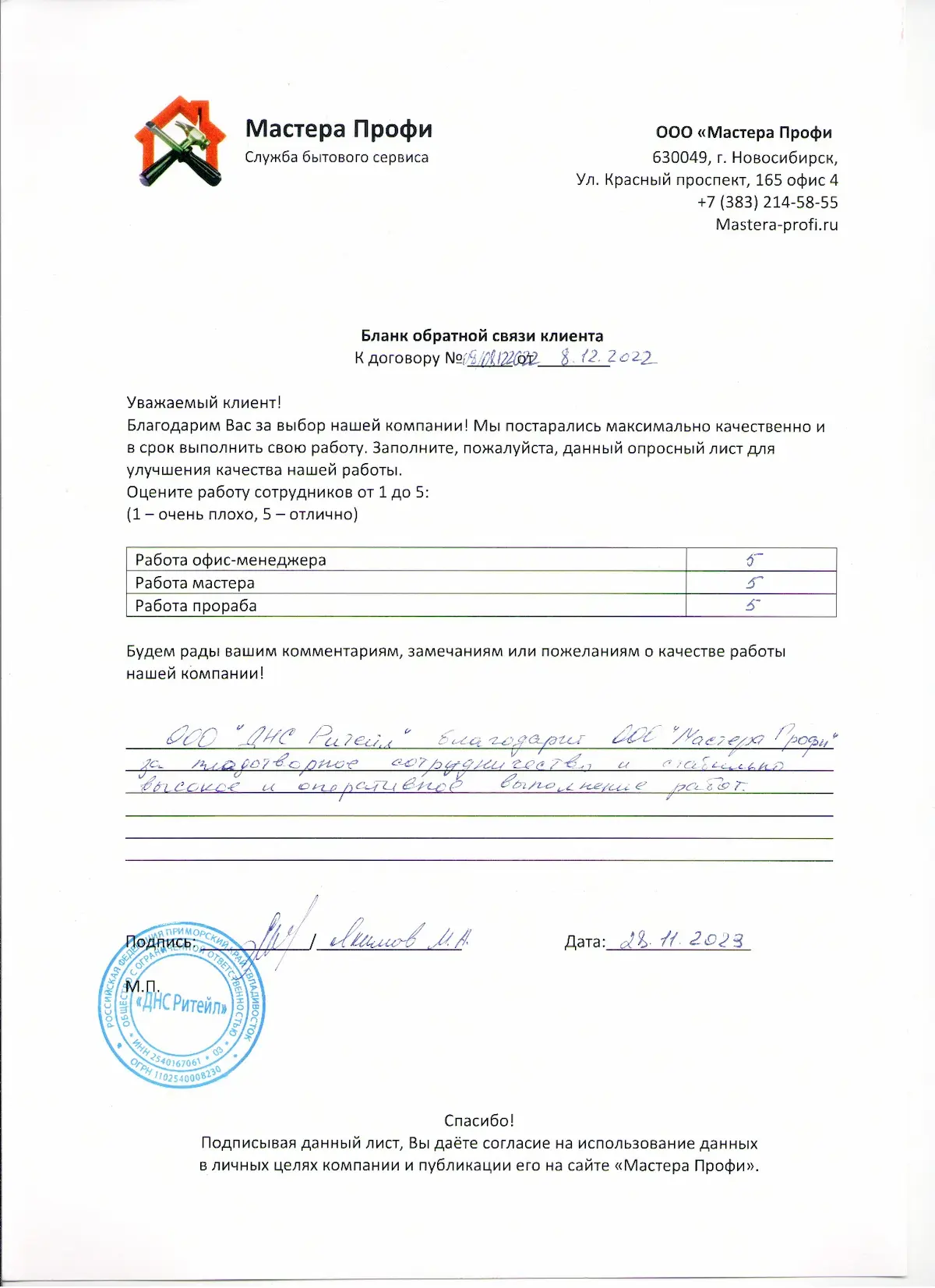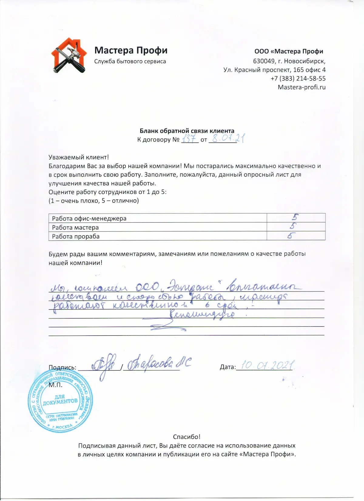 Наш менеджер уточняет детали, ориентирует по стоимости и согласует время для бесплатного выезда замерщика.