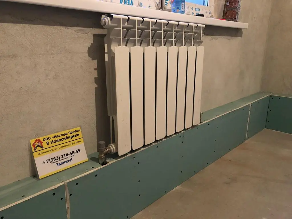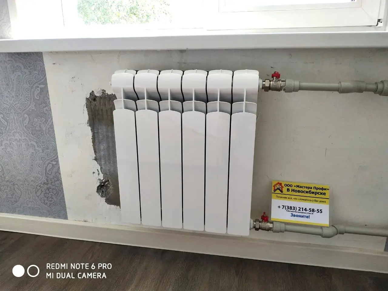 Все фотографии в портфолио — это реальные объекты, выполненные сантехниками ООО «Мастера Профи» в Новосибирске. Мы показываем как процесс замены старых чугунных батарей, так и результат установки новых биметаллических и алюминиевых радиаторов в квартирах.