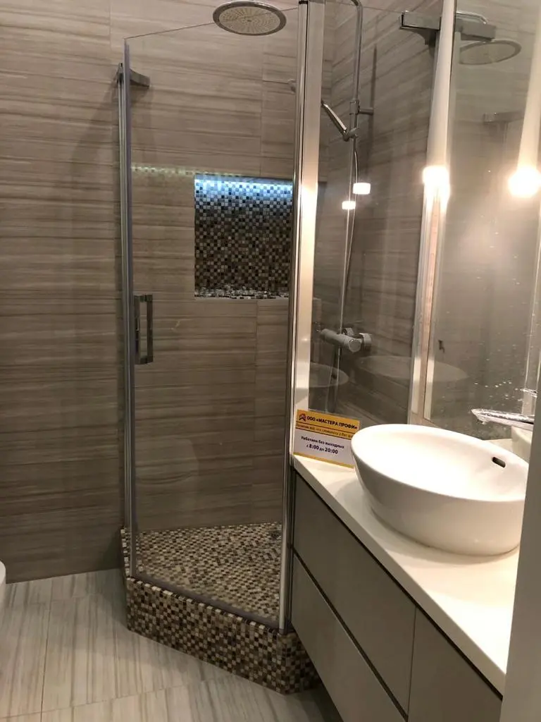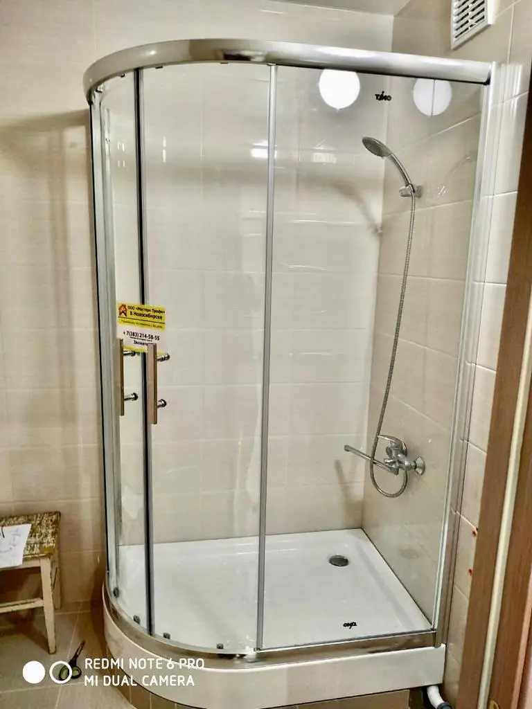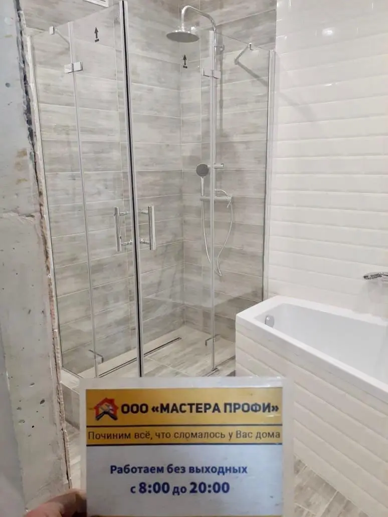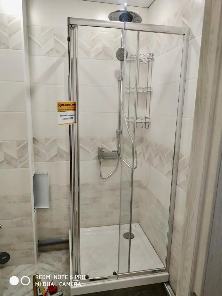 Оцените качество нашей сборки. На фото — душевые уголки с поддонами, установленные нашими мастерами. Мы уделяем особое внимание деталям: ровной установке поддона, плавному ходу дверей и аккуратным, герметичным швам.