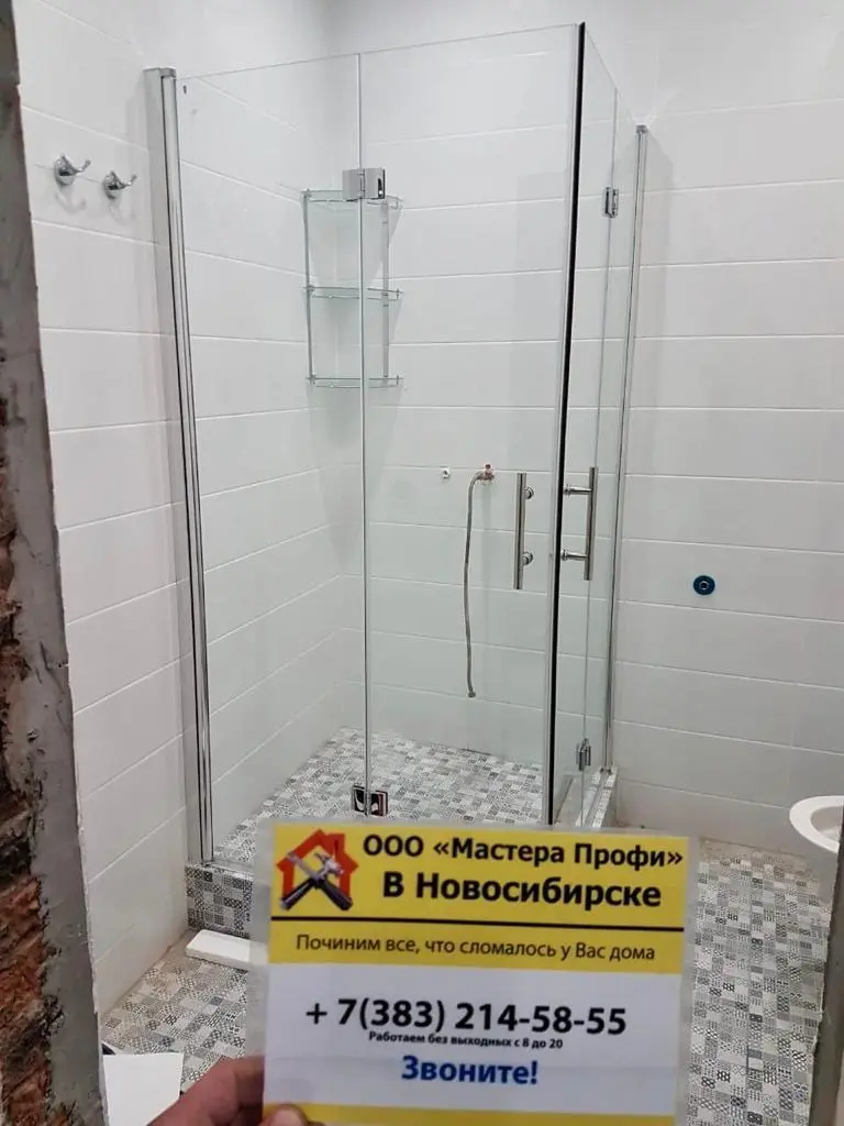 Вы звоните нам, мы уточняем модель уголка и поддона, называем точную цену за работу.